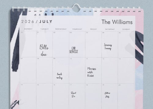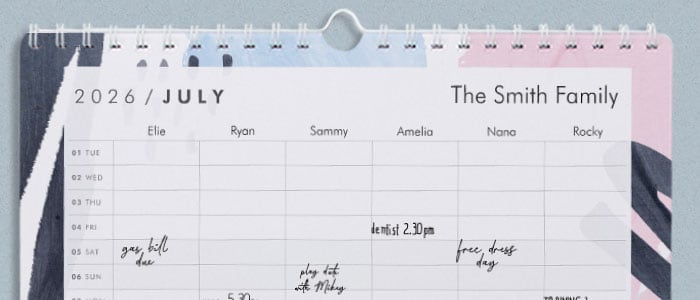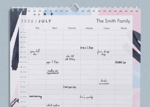 Get organised in style with Tinyme's Personalised 2026 Calendars & Family Planners. Over 100 designs, photo cover option, starting month picker & add up to 6 names + photos in column layouts. Create custom monthly planners, schedulers, agendas, charts & more!