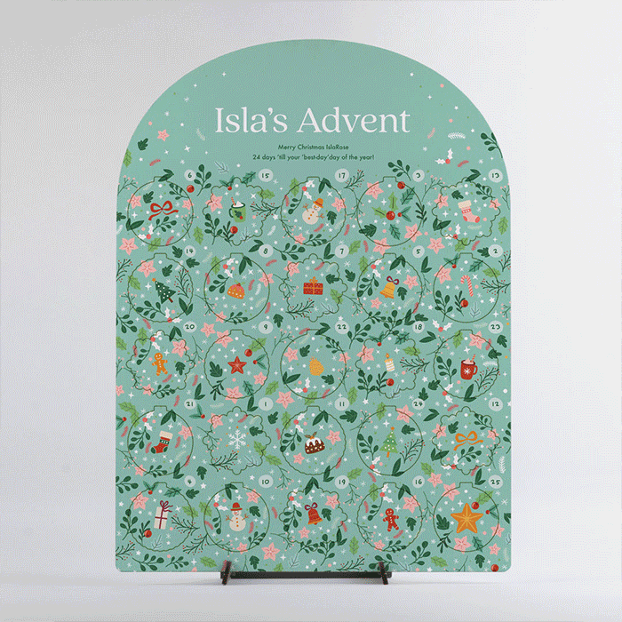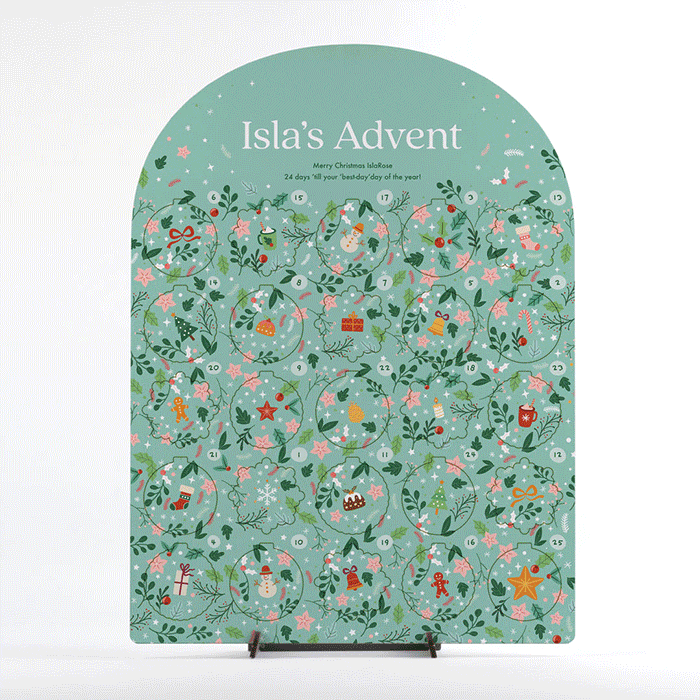 The personalised Christmas calendar can be mounted on its complimentary stand.
