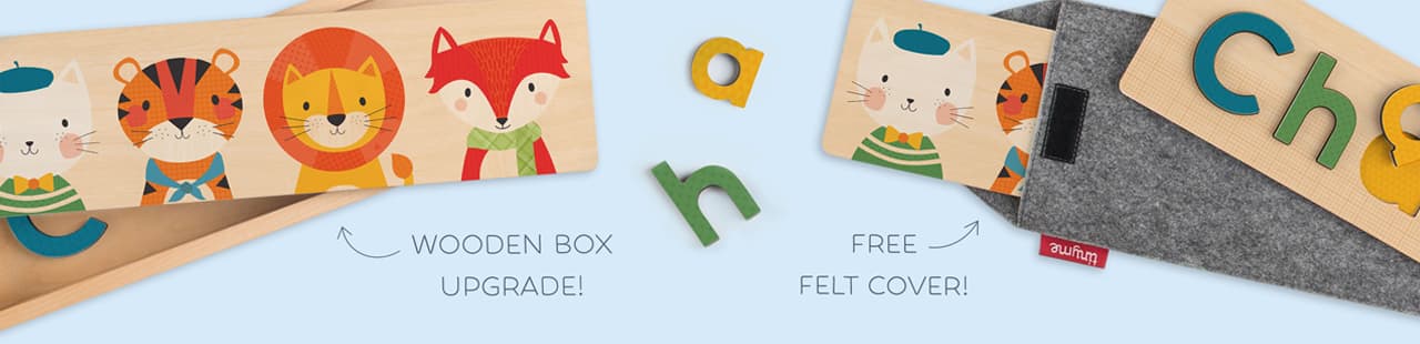For the Classic Name Puzzle you have the choice between keeping them stored in their original packaging or upgrade to a felt cover pouch or our solid wooden storage box, with beautiful finger-jointed construction, where the integrated slide-in lid becomes the puzzle base.Classic Plus, Premium, and Premium Jumbo Name Puzzles offer the option to keep them in their original packaging or upgrade to a felt storage pouch.